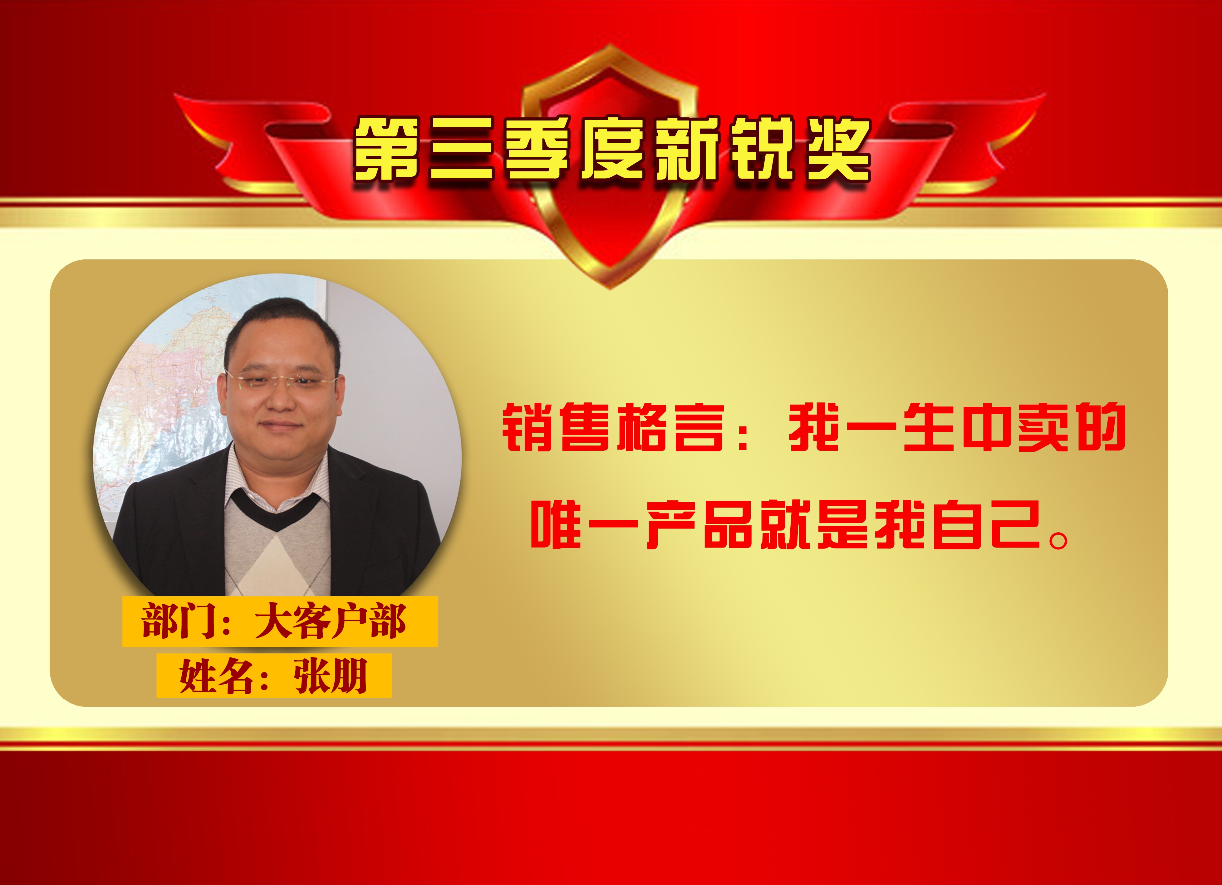 恭賀大客戶部張朋同事獲得“第三季度新銳獎”!